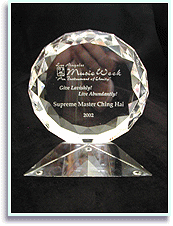 proudly presented an award to Supreme Master Ching Hai and described