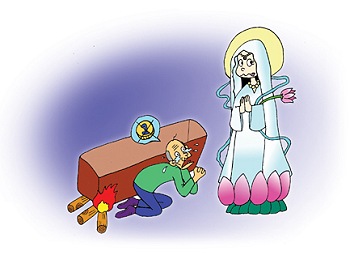 stinginess, the Quan Yin Bodhisattva manifested as a monk and sat there.
