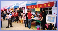[Kinmen] On May 8, 2004, local fellow practitioners participated in a charity sale at the Long-term Care Expo held by the Kinmen County government. Huge crowds of visitors attended, their attention quickly drawn by the wonderful array of Master’s sample booklets, News magazines and art works on display at the initiates’ booth. In addition, radish cakes, milk cakes and fruit jelly prepared by the initiates quickly became hot items in the bazaar.