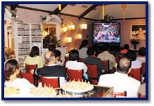 seminar attendees mingled in the relaxed setting of the Vegetarian House,