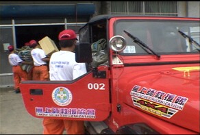 As the strong winds and heavy downpours brought about by Typhoon Aere caused severe flooding in many areas around Formosa, the Supreme Master Ching Hai Relief Society was asked to provide assistance in the affected sections of Hsinchu County. The Society, a civilian body that has long cooperated with governmental fire-fighting and disaster relief agencies, is regarded as one of the most reliable relief organizations in Formosa. Their years of efficient work with the government and deep understanding of their craft have earned the group's members a reputation for high efficiency and strong coordination in conducting relief operations.
