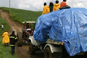 the relief teams were limited to traveling in one truck. The muddy road