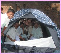 schools, a Muslim mosque and another refugee camp and distributed tents,