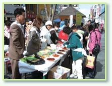 On March 12, 2006, sisters and brothers from Daegu City and nearby locations gathered at the city’s center to distribute “Alternative Living” flyers and provide free samples of vegetarian food to the public.