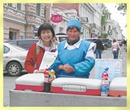 It is worth mentioning that half way through our trip, our tour guide was no longer able to lend us his service. Almost immediately, a zealous tour guide, Mr. Andrey, appeared in front of us, and volunteered to help. This messenger of God was ardent and intelligent. After thoroughly assessing our situation, he gave us many good suggestions according to local customs and public interests. For example, over 99% of the local people did not understand English. The local people did not want preaching, but were health oriented. Mr. Andrey therefore suggested that we change the backside of the flyer from English to descriptions of vegetarian ingredients and recipes in Russian. This would help local people become vegetarians more easily. He even told us to learn the pronunciation of “healthy food” in Russian so the local people would be more receptive to us. He patiently taught each one of us how to pronounce the words until we got them all correct.