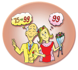 Một ông già 75 tuổi đại triệu phú vừa mới kết hôn với một cô gái đẹp, tóc vàng, 18 tuổi. Những người bạn của ông hỏi: "Sao 75 tuổi rồi mà ông vẫn cưới được cô gái 18 tuổi?" Ông già trả lời: "Tôi nói với cô ấy là tôi 99 tuổi để cô ta lấy tôi cho lẹ!"