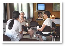 Các quan khách hăng say bàn luận về giáo lý Sư Phụ với các đồng tu tại buổi hội thảo ở Geneva.