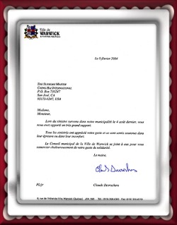 Hội đồng Cố vấn của thị trấn Warwick đồng lòng với họ trong việc gởi đến quý vị lời cảm tạ chân thành nhất về hành động quảng đại của quý vị.