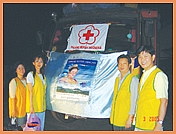 Khi biết được hiện tình từ những đài thông tin địa phương, các đồng tu Nam Dương đã liên lạc với Hội Hồng Thập Tự để tổ chức cuộc cứu trợ cho Nias, và mua bánh ngọt, bánh em bé, sữa, nước khoáng, gạo, mì gói, dụng cụ nhà bếp, khẩu trang, bao tay, thuốc men và những phẩm vật khác. Ðể hợp tác với Hội Hồng Thập Tự, những vật dụng cần thiết cấp bách nhất như khẩu trang, bao tay, thuốc men được lập tức chở đến Nias bằng trực thăng, và những phẩm vật khác được dần dần chở đến những vùng bị ảnh hưởng bằng xe vận tải.