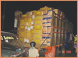 khô cho người lớn và em bé, nước bình, gạo, mì ăn liền |