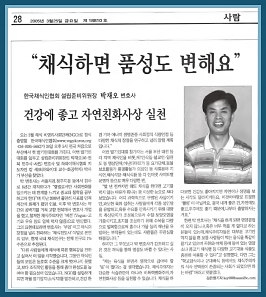 Về việc làm của ông, Ông Park nói "Tôi bắt tay vào công việc này để cho những người khác biết sự ăn chay tốt như thế nào và niềm hỷ lạc mà nó đem lại cho đời sống của chúng ta. Trong vài năm vừa qua, những hoạt động ăn chay chỉ được truyền bá hạn hẹp giữa những nhóm cùng chí hướng ở địa phương, và cần phải tổ chức thêm các hoạt động và các hội đoàn ăn chay để đạt lý tưởng của Hội Ăn chay Hàn Quốc (VSK). Một khi Hội được công nhận là NGO chính thức, chúng tôi sẽ xuất bản một tạp chí hàng tháng đưa ra những nghiên cứu thực tế để truyền bá đến thính chúng sự vô cùng lợi ích của việc trường chay trên phương diện sức khỏe, giải quyết nạn đói trên thế giới, sử dụng năng lượng một cách hữu hiệu hơn, tôn trọng đời sống, an ninh xã hội, ổn định nguồn cung cấp lương thực, v.v..."