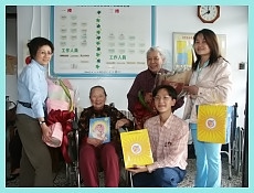 Vào ngày 23, các đồng tu đã nhiệt thành giới thiệu các ấn phẩm của Sư Phụ đến những vị cao niên tại viện dưỡng lão Từ Bi tỉnh Ðài Bắc, và đã được hai bà ngoại ngoài chín mươi tiếp đón. Hai cụ vui vẻ chụp hình chung với các đồng tu. Một trong số các cụ bà rất sung sướng thấy các đồng tu đến thăm và trò chuyện với họ, đã cám ơn sự quan tâm nồng ấm của các đồng tu. Các sư huynh sư tỷ sau đó lại đi tặng sách tại các thư viện Jinshan, Shihmen và Sanjhih. Các quản thủ viên thư viện đã tiếp nhận sách và bày tỏ lòng biết ơn chân thành của họ và hứa sẽ đem sách ra bày càng sớm càng tốt vì lợi ích của đọc giả.