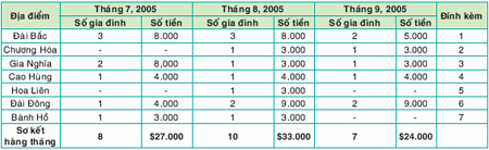 từ tháng 7 đến tháng 9, 2005 (Ðơn vị: tiền NT)