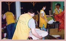 Các đồng tu Ðào Viên bày tỏ mối quan tâm đến những người không được xã hội ưu đãi bằng cách quyên tặng, phân loại, đóng thùng, và chuyển quần áo cũ đến Hội Lungtan Viện Giáo dục cho người bệnh tâm thần.