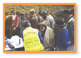 Cho nên vào ngày 29 tháng Giêng, các đồng tu đã dựng một trạm y tế trong căn lều mượn từ người địa phương, và với sự giúp đỡ của làng trưởng, tin tức về sự phục vụ miễn phí của Hội Quốc tế Thanh Hải Vô Thượng Sư được truyền đi rất nhanh. Thế là hơn một trăm bệnh nhân được ba đồng tu bác sĩ khám bệnh, và trưởng làng đã tán thán những thành viên của đội cứu trợ về sự quan tâm và cung cách chuyên nghiệp của họ. Và không màng số bệnh nhân đông đảo, qua sự gia trì của Sư Phụ, các đồng tu vẫn giữ tinh thần cao trong suốt thời gian công tác và phục vụ một cách thành công.