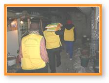 Hầu hết những nơi tạm trú quanh nhà ga Busan đều nhận được sự hỗ trợ từ chính quyền địa phương và sự đóng góp của tư nhân, nhưng sự trợ giúp này thường không đủ đáp ứng nhu cầu, nhất là trong mùa lễ. Hơn nữa, năm nay một trong số những nơi tạm trú đã không thể cung cấp được thức ăn cho những người thiếu thốn này vào ngày 24 và 25 tháng 12, vì nhà thờ kế cận là nơi thường đóng góp thức ăn cho nhà tạm trú đã không thể cung ứng đủ số lượng như thường lệ. Cho nên vào bữa ăn trưa ngày Giáng Sinh các đồng tu đã cung cấp cho khoảng bốn chục thực khách vô gia cư với súp bánh gạo cổ truyền, trái cây, cùng với quần áo lót ấm cho những người bạn thiếu may mắn.