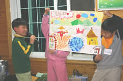 Kế đến, sau một lúc vui chơi ngoài trời, các em lập thành nhóm nhỏ và diễn đạt óc sáng tạo bằng những bức tranh vẽ về thời đại Hoàng Kim và thảo luận về tân kỷ nguyên phải như thế nào. Chẳng hạn như một nhóm đã vẽ núi và sông với nhiều thú vật rồi giải thích hình ảnh đó có liên hệ gì với môi trường của thời đại Hoàng Kim. Và sau đó các em tham gia một lớp tìm chòm sao trên bầu trời đêm, sinh hoạt này bao gồm việc ra ngoài để quan sát mặt trăng và những tinh tú bằng kính thiên văn. Tiếp đến, trại chấm dứt bằng mục các tham dự viên ăn hạt dẻ, khoai lang và những món chay ngon miệng khác được nướng trên ngọn lửa trại và chơi đốt pháo hoa.