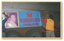 Thanh Hải Vô Thượng Sư vô cùng quan tâm khi nhận được tin thiên tai thảm khốc này. Ngài lập tức đóng góp 100.000$ mỹ kim và chỉ thị đồng tu dồn hết nỗ lực trong việc cứu trợ và đáp ứng nhu cầu của nạn nhân thiên tai. Vào lúc đó, cuộc hội thảo đặc biệt của hội Quốc tế Thanh Hải Vô Thượng Sư vừa bế mạc và đồng tu đang trên đường trở về nhà. Một vài sư huynh đã nhận được chỉ thị của Sư Phụ trong lúc đang ở Thái Lan. Vừa đặt chân đến Formosa vào đêm 4 tháng 12, họ lập tức hỏi về chuyến bay, giấy chiếu khán và thủ tục cần thiết. Họ cũng sắm đồ đi mưa, đèn pin, dụng cụ truyền thông, và những vật dụng cần thiết trước khi những tiệm đóng cửa. Sáng hôm sau, họ hoàn tất những nghi thức cần làm và cố gắng đáp chuyến bay sang Manila càng sớm càng tốt. Trong khi đó, vào buổi chiều ngày 5 tháng 12, một toán gồm 3 người đã đến Legaspi, thủ phủ quận Albay, nơi đây họ diện kiến Thống đốc Fernando Gonzales và những viên chức khác thuộc trung tâm cứu trợ thiên tai tại tòa đô sảnh thành phố. Sau khi thu thập tin tức liên quan đến tình trạng và những vật liệu cần gấp tại nhiều nơi khác nhau, đồng tu đã đi thăm những nơi bị ảnh hưởng trong vùng để tìm hiểu thêm về thiên tai. Hai toán đồng tu sau đó đã gặp tại khách sạn và khám phá qua mạng lưới truyền thông là nạn đất chùi đã tàn phá những ngôi làng gần Legaspi, kể cả Padang, đã bị càn quét và biến thành một "sa mạc đen" dưới chân núi lửa Mayon. Sáng sớm ngày 6 tháng 12, nhóm đầu tiên đã đi tới Legaspi để thu thập thêm chi tiết và mua những vật liệu cứu trợ. Nhóm thứ nhì liên lạc bằng điện thoại từ Trung tâm Manila, truyền đạt tin tức và làm bích chương. Vừa chuẩn bị đi gặp Thị trưởng Noel Rosal thì không ngờ họ lại gặp ông tại khách sạn, nơi ông và gia đình đang tạm trú sau khi nhà bị ngập lụt. Thị trưởng Rosal hướng dẫn đồng tu đến Trung tâm Phát triển An sinh Xã hội, là nơi đảm trách nhiệm vụ cứu trợ thiên tai, để biết thêm về tình trạng và cứu trợ khẩn cấp cần thiết tại Padang. Họ được tin có hơn 30 ngàn nạn nhân đang tuyệt vọng chờ được giúp đỡ. Một viên chức địa phương, cô Manaya, giới thiệu cùng đồng tu một vài công ty lớn chuyên về thực phẩm, họ quyết định yêu cầu sự tiếp tay của ông Yao Heng-shan. Với sự giúp đỡ tận tình của ông, đồng tu lập tức mua ngay số lượng gạo cần thiết, bánh bích quy, nước lọc, sữa bột cho em bé và những nhu yếu phẩm khác. Tối hôm đó, hai đồng tu thuộc nhóm thâu hình và một sư tỷ Âu Lạc bay sang Manila từ Thái Lan, để chuẩn bị đáp chuyến bay sớm tới Legaspi ngày hôm sau. Sáng sớm ngày 7 tháng 12, đồng tu rời Manila và xoay sở để đến vùng thiên tai sau cuộc hành trình 12 tiếng. Tại đó, hàng tiếp liệu được chuyển xuống bởi quân nhân do chính phủ phái đến. Nước đã tràn vào những nhà tạm trú và dân chúng phải ngủ trên ghế chất cao lên trên để tránh nước. Ða số người đi chân không và không đủ nước sạch cho việc vệ sinh cá nhân. Ban làm việc cũng đã nhận thấy dấu hiệu bịnh kiết lỵ trong số trẻ em. Trong lúc phân phối phẩm vật cứu trợ, đồng tu cũng phát thức ăn gia trì và hình Sư Phụ. Trả lời câu hỏi của một số người hiếu kỳ và quân nhân: "Vị phụ nữ xinh đẹp này là ai vậy?", đồng tu nắm cơ hội này giới thiệu Sư Phụ.