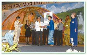 Ðể tỏ lòng biết ơn tột cùng của chúng ta với cảnh sát, thay mặt cho Thanh Hải Vô Thượng Sư và theo sự chỉ thị của Ngài, một đóng góp khiêm nhường 20.000$ mỹ kim đã được trao tặng để giúp những gia đình cảnh sát với hoàn cảnh tài chánh khó khăn. Buổi lễ diễn ra vào ngày 2 tháng 12 tại hội trường cộng tu. Hôm ấy, ông ủy viên không tới được, nên ông đã gửi sĩ quan cảnh sát là Ðại tá Pitak Sridang của Ðặc chi Phân đoàn 1 đến nhận quà đóng góp cùng với một số ấn phẩm của Sư Phụ. Hơn nữa, thánh ái của Sư Phụ đã được ban bố qua hình thức một bài thơ mang tên "Người Hùng Thầm Lặng (xin xem phần "Thơ Vô Tử" của Bản Tin kỳ này) do Sư Phụ đích thân sáng tác tặng cho tất cả những cảnh sát tốt. Vào ngày bài thơ của Sư Phụ bằng tiếng Anh và tiếng Thái được trao cho Ủy viên Teeradej Rodphotong, ông nói kỳ sau nếu Sư Phụ đến Thái Lan một lần nữa, ông xin đích thân được đón Ngài. 2. Tòa đô chính Pattaya, vì tiện nghi cho chúng ta và miễn phí, đã cung cấp những xe nhà vệ sinh di động mỗi ngày tại địa điểm hội thảo. Chúng tôi thay mặt Sư Phụ theo chỉ thị của Ngài tặng món quà đóng góp khiêm nhường 6.000$ mỹ kim cho Tòa đô chính 3. Tu viện Phật giáo địa phương là chùa Dhamakaya, Phakhruu Phaladphubase Chanapinyo,