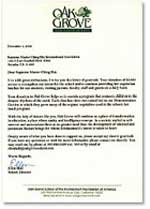 Trong trường có một số kỹ thuật hay như nhà kính xây bằng đất trộn rơm sử dụng một thiết kế năng lượng mặt trời thụ động. Ðất trộn rơm được dùng để đổ tường, với chức năng làm vật cách nhiệt. Từ đó sinh viên được học trực tiếp những kỹ thuật xây cất thay thế có thể phục hồi. Gần đây, khi Thanh Hải Vô Thượng Sư nghe nói về trường Oak Grove và biết được triết lý của trường, chương trình giảng dạy có xu hướng toàn cầu, chương trình ăn trưa khỏe mạnh và từ bi, Ngài đã quảng đại đóng góp cho trường 5.000$ mỹ kim. Các thành viên của Hội đã đến thăm trường vào đầu tháng 12, nói chuyện với các nhân viên, giáo viên và sinh viên, và chuyển số tiền đóng góp Thanh Hải Vô Thượng Sư cho trường, trường đã đón nhận một cách nhã nhặn và biết ơn.