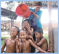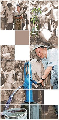 • Nhóm WoongJin , với sự giúp đỡ của Hội Ðịa chất Hàn Quốc, đang thực hiện dự án đào giếng ở Cam Bốt, để giúp đỡ tình trạng nước bị ô nhiễm gây nên những bệnh truyền nhiễm trầm trọng. Cho đến nay, công ty nổi tiếng làm sạch nước này đã đào được 23 giếng nước và dự định đào thêm 100 giếng nữa vào khoảng cuối năm nay. • Hãng điện tử LG , với sự giúp đỡ của các nha sĩ Hàn Quốc, đang cung cấp giải phẫu vòm miệng miễn phí cho các trẻ em nghèo với bệnh sứt môi ở Pakistan, Ai Cập, Morocco, Kenya và nhiều quốc gia khác. Chi nhánh Châu Mỹ La Tinh của công ty này cũng đang điều hành một ban y tế di động trên xe để đến với dân chúng trong những vùng rừng núi hẻo lánh. Ban y tế không bao giờ ngần ngại băng qua sông khi cầu bị gãy và trèo lên những đường núi dốc cao gồ ghề để đến với những người cần được giúp đỡ. Ông Park, trưởng ban y tế nói rằng: "Vùng Trung Mỹ và Châu Mỹ La Tinh là nơi mà sự chênh lệch giữa người giàu và kẻ nghèo rất lớn. Công ty tôi không chỉ nghĩ đến dân địa phương như khách hàng hay thân chủ; thay vào đó, chúng tôi nên đến với họ với tất cả lòng thành tâm để được chấp nhận như là một phần trong cộng đồng của họ". • Hãng hàng không Korean Airlines đã cho trồng nhiều cây để tạo một khu rừng ở những vùng ngoại ô của Ulaanbaatar, thủ đô của Mông Cổ. Ðiều này giúp ngăn ngừa việc đất đai biến thành sa mạc, là một vấn đề trầm trọng về môi sinh. Mỗi năm, công ty hàng không gửi nhân viên mới của họ đến Mông Cổ để trồng cây trong rừng. Hơn nữa, công ty vận chuyển miễn phí những vật liệu cứu trợ cho bất cứ nơi nào trên thế giới có thiên tai. Khi trận sóng thần xảy ra vào năm 2005, công ty đã sắp xếp cho nhiều chuyến bay đặc biệt chở các tiếp liệu cứu trợ miễn phí và đặc biệt hạ giá vé máy bay cho những ai muốn đi đến các vùng bị ảnh hưởng để tình nguyện giúp đỡ.