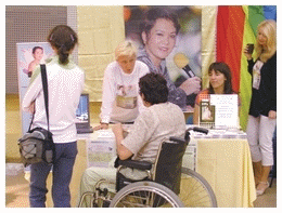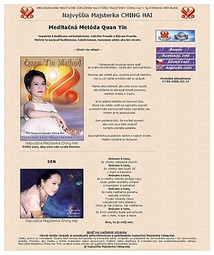 http://www.spojeniesbohom.sk. Trong tháng 10 của Kim niên 3 (2006), chúng tôi tham gia vào ba cuộc triển lãm địa phương với chủ đề tập trung vào vấn đề tâm linh và sống khỏe mạnh. Chúng tôi trưng bày đầy gian hàng nhỏ của chúng tôi với hình ảnh Sư Phụ, tờ thông tin Lối Sống Mới, tờ thông báo về đài SMTV, dĩa DVD và CD. Rất nhiều người vô cùng ưa thích pháp môn Quán Âm và Sư Phụ Thanh Hải. Thường là họ đi thẳng từ cổng vào đến gian hàng của chúng tôi như là được hướng dẫn bởi lực lượng của Thượng Ðế, và trong sự ngạc nhiên, xem băng thuyết pháp của Sư Phụ đang được trình chiếu trên máy điện toán xách tay. Trong buổi triển lãm đầu tiên có 9 người học pháp Phương Tiện, và sau những buổi triển lãm khác có nhiều người hơn nữa hỏi xin thọ pháp. Hiện tại có 14 người đang tập pháp Phương Tiện và nhiều người khác đang chờ kỳ cộng tu kế để học. Một số người thật sự mong muốn được thọ Tâm Ấn.