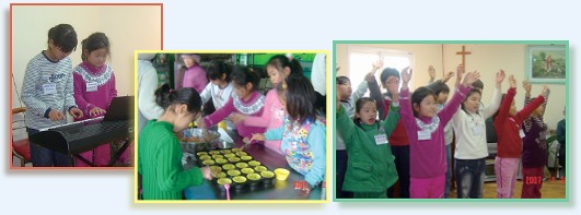 cao niên và người tàn tật. Các em thích thú làm bánh bích qui và bánh bông lan, rồi cẩn thận