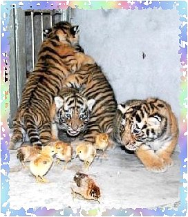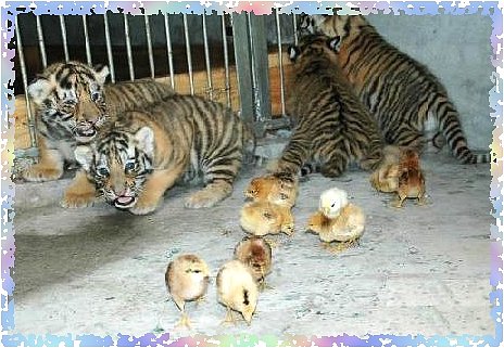 những con gà con mà còn chơi chung với chúng nữa. Những hổ