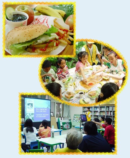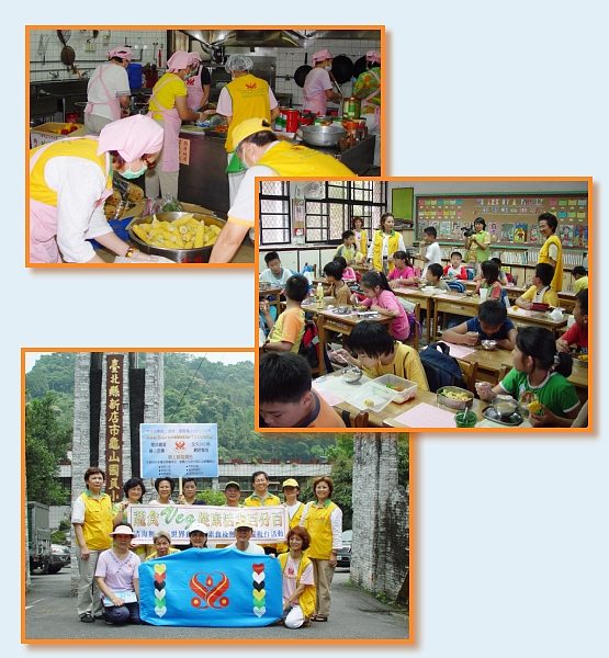 Vào ngày 25 tháng 5, đồng tu thuộc Trung tâm Ðài Bắc đến thăm trường tiểu học Phúc sơn ở Ô Lai một lần nữa để tổ chức sinh hoạt khuyến khích ăn chay và đã được tiếp đón nồng nhiệt bởi các giáo viên và học sinh. Một số em vui vẻ nói: "Hay quá, quý cô chú trở lại lần nữa và chúng em sẽ được ăn no đầy bụng vì thức ăn rất là ngon!" Thư ký Trần của trường cho biết tại một trong những buổi họp của họ tất cả ban giáo chức đều có cùng một quan điểm rằng chỉ một bữa ăn trưa chay lành mạnh mỗi tháng là không đủ. Họ muốn mời Hội chúng ta đến cung cấp bữa ăn chay mỗi tuần một lần và tổ chức hội thảo về thức ăn chay lành mạnh cho giáo chức ở trường. Vào ngày 30 tháng 5, một buổi hội thảo gọi là "Lối Sống Mới – Trở lại với sức khỏe thiên nhiên" cho các giáo viên được tổ chức. Quyển sách của John Robins "Cách ăn uống cho một tân Hoa Kỳ" và sách nấu ăn "Gia chánh Vô Thượng" của Sư Phụ cũng được tặng cho trường. Cuối cuộc hội thảo, mỗi người tham dự nhận được hai hộp thức ăn chay với niềm hoan hỷ và sung sướng. ![]() Khuyến khích "Thương loài vật và tôn