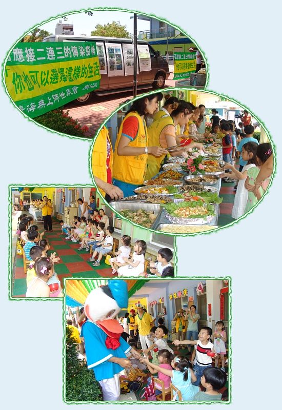 [Ðài Nam]Vào ngày 25 tháng 5, Kim niên 4 (2007), các đồng tu Ðài Nam, Formosa, tổ chức một sinh hoạt để khuyến khích "Thương loài vật và tôn trọng mạng sống" tại trường mẫu giáo Từ Mẫu ở thôn Học Giáp, tỉnh Ðài Nam. Hơn một trăm người trong trường mẫu giáo, bao gồm trẻ em, thầy cô và cán sự xã hội đã tham dự buổi sinh hoạt. Chương trình gồm trình chiếu DVD "Những anh hùng chân chính", phục vụ thức ăn chay tuyệt hảo, phân phát bìa đựng hồ sơ và tấm kê viết Lối Sống Mới, cung cấp tài liệu y khoa liên hệ và tặng DVD về nấu chay và các ấn phẩm của Sư Phụ. Thêm vào đó, chúng tôi chia sẻ với mọi người thông điệp của Truyền hình Vô Thượng Sư. Sau bữa ăn trưa, một số giáo viên tỏ ra ngạc nhiên là thức ăn chay có thể giàu dinh dưỡng và ngon miệng như vậy. Viện trưởng Trần Chính Lâm hy vọng rằng những đầu bếp của trường mẫu giáo có thể học nấu món chay lành mạnh hầu có thể cung cấp bữa ăn trưa dinh dưỡng đến học sinh và thầy cô. Vào lúc cuối của sinh hoạt, giám đốc Trần, thay mặt cho trường mẫu giáo, trao tặng một bằng cám ơn và một hồ sơ về lịch sử của trường mẫu giáo Từ Mẫu cho Hội Quốc tế Thanh Hải Vô Thượng Sư. Ông bày tỏ ước vọng của ông là khái niệm tốt và lành mạnh này được truyền sang cho phụ huynh. Ông hy vọng có một cơ hội để mời phụ huynh đến tham dự lần tới. ![]() Hoạt động làm sạch bãi biển vào mùa xuân
