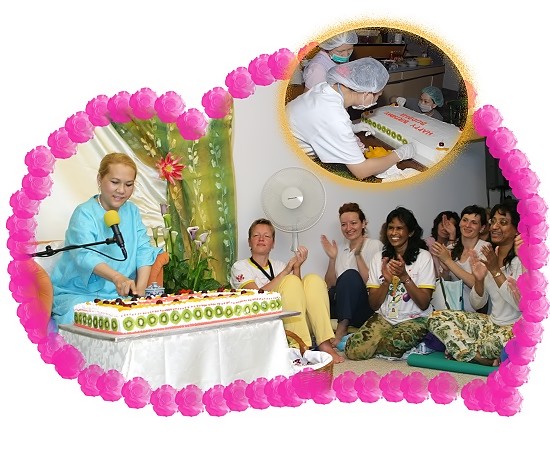bàn tính làm một chiếc bánh thật to để Sư Phụ cắt trong buổi chiều cử hành lễ và điều này đáng