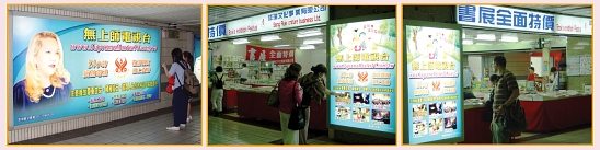 Thông điệp Truyền hình Vô Thượng Sư được chiếu sáng qua hộp đèn tại bến xe chính