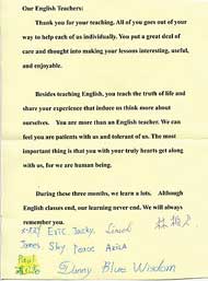 Bà Lý Tịnh Nghi, cố vấn tâm lý tại Trung tâm Ðiều trị nói: "Tôi rất ngạc nhiên thấy những thực tập sinh có thể chú tâm và chăm chỉ như thế trong lúc học tập. Cám ơn các bạn rất nhiều cho những cố gắng của các bạn và sắp xếp một lớp học vui thú và rất tâm linh". Nhiều người tại Trung tâm Ðiều trị cảm động sâu xa bởi tình thương của Sư Phụ, đã bắt đầu ăn chay và chuẩn bị thọ Tâm Ấn. Rõ ràng là tình thương của Thượng Ðế đã sưởi ấm lòng nhóm người đang phấn đấu bên lề xã hội này. Nụ cười thiếu vắng từ lâu giờ đã xuất hiện trở lại trên gương mặt họ, và họ rất nghiêm túc về thiền định cũng như tích cực về sự học hỏi của họ. Trong kỳ này, chúng tôi nhận thấy một người đã chuyển sang trường chay tinh khiết được 7 ngày. Ông nói với chúng tôi rằng mỗi ngày ông thiền trước khi đi ngủ vào buổi tối, và thường có thể nghiệm ánh sáng đầy màu sắc và những chấm sáng như sao chổi. Ông nói: "Giáo lý của Sư Phụ thật có ý nghĩa. Lắng nghe những lời của Ngài nhiều hơn có thể thật sự hữu ích cho chúng ta!" Tất cả các đồng tu tham gia vào công việc chia sẻ Chân lý tại Trung tâm Ðiều trị đã nhận được lợi ích to lớn và cảm động sâu xa. Một vị sư tỷ nói, "Có một lần chúng tôi làm lớp Anh ngữ sống động hơn và lý thú hơn bằng cách làm bánh mì kẹp và bánh chưng chay, rồi dùng chúng làm vật liệu giảng dạy. Ngay cả các thực tập sinh thường lạnh nhạt và xa lánh trong lớp cũng trở nên hăng hái và tích cực ngày hôm đó, đặc biệt là lúc thực tập khi họ tự tay làm bánh mì kẹp và bánh chưng chay. Bầu không khí tràn ngập tiếng cười không dứt, lớn đến nỗi những người học ở phòng khác đến để xem chuyện gì xảy ra. Nhân viên tại Trung tâm Ðiều trị cũng thường xuyên đến để xem chúng tôi đang làm gì. Như thể chúng tôi đang vui hưởng một tiệc liên hoan náo nhiệt và vui vẻ. Cô ơi! Tại sao bánh mì kẹp chay này ngon vậy? Cô ơi! Tôi cũng muốn thành người ăn chay! Tôi muốn thêm một bánh chưng chay! Hưởng ứng nồng nhiệt của thực tập sinh vượt ngoài kỳ vọng của chúng tôi. Ðặc biệt là khi họ nói cám ơn chúng tôi sau lớp học, lòng chân thành và nét rực rỡ trong ánh mắt họ thật sự cảm động! Sư Phụ nói rằng bất cứ việc gì chúng ta làm đều là cho mình cả. Khi chúng ta làm cho người khác vui, chính chúng ta càng vui hơn. Tôi rất biết ơn đến Thượng Ðế đã ban thể nghiệm đẹp đẽ này cho tôi". Một sư huynh đồng tu nói: "Bạn có bao giờ thấy người ta cười vui đến mức họ rạng ngời lên chưa? Tôi đã thấy qua rồi, và tôi thấy mỗi tuần tại Trung tâm Ðiều trị ma túy Tân Ðiếm. Mỗi Thứ Tư và Thứ Năm vào ngày xuất hành ra ngoài của chúng tôi, chúng tôi mang tình thương và sự gia trì dồi dào của Sư Phụ đến các bạn cũ tại Trung tâm Ðiều trị ma túy Tân Ðiếm. Lòng biết ơn chân thành trong ánh mắt rạng ngời của những thực tập sinh đã mang lại cho chúng tôi sự nhận thức rằng tất cả đều là ân sủng tuyệt vời của Thượng Ðế". ![]() ![]() Quà của các thực tập sinh tặng cho đồng tu trước khi hoàn tất lớp học – những hình Phật vẽ bằng tay tinh xảo và một quyển Tâm Kinh.