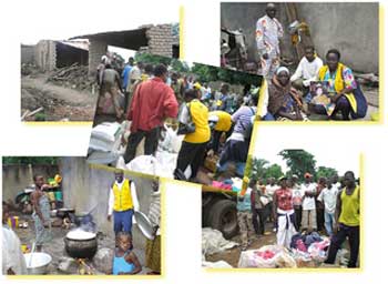 Ông cho Hội viên chúng tôi 2 chiếc xe để họ có thể mua các món cứu trợ cần thiết. Cũng thế, nhờ ông, đội chúng tôi được phép tự nấu ăn trong khách sạn nơi họ ở. Ông ta cũng cung cấp xe vận tải để chở hàng cứu trợ từ thành phố Bobo Dioulasso đến Bama. Trên hết, ông chỉ định 7 người giúp đỡ chúng tôi trong nỗ lực cứu trợ này. Tất cả các nạn nhân đều nhận được các vật liệu cứu trợ ngay hôm đó. Sau đó chúng tôi tặng những vật dụng còn dư lại cho một tổ chức xã hội khác. Trước khi phân phát, một số đồng tu giới thiệu Thanh Hải Vô Thượng Sư với dân chúng và giải thích lý do họ đến. Sau đó, tờ giới thiệu pháp thiền Quán Âm, một số Sách Biếu, hình Sư Phụ và các tờ thông tin Lối Sống Mới được phân phát. Ðồng thời, một thời gian được dành ra để trả lời vô số câu hỏi về tu hành. Là một ngạc nhiên thích thú khi khám phá ra rằng một số người rất thích giáo lý của Sư Phụ; những người khác đồng ý với những lý do để trường chay. Chúng con xin cảm ơn Sư Phụ cho cơ hội này để chia sẻ tình thương vô điều kiện của chúng con Chi phí của Thanh Hải Vô Thượng Sư giúp đỡ