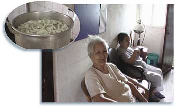 Vào tháng 8, Kim niên 4 (2007), để chia sẻ tình thương của Sư Phụ đến với những người cần thiết, chúng tôi mang một số bánh xếp chay tới người cao niên tại một trung tâm hưu trí ở tỉnh Giang Tô. Nơi đó có khoảng 30 vị cao niên cư ngụ. Hầu hết là rất lớn tuổi. Mặc dầu họ được sự chăm sóc chuyên nghiệp từ nhân viên, trái tim cô đơn của họ vẫn mong muốn có sự giao tiếp và tình thương giữa người với người. Ngày hôm đó, chúng tôi mang đến nhiều quà bao gồm thịt chay, thịt chay khô, bánh kem chay và bánh qui chay. Chúng tôi cũng mang theo đầy đủ vỏ bánh xếp và nhân để làm bánh xếp ngay tại đó ở trung tâm hưu trí. Chúng tôi trò chuyện với họ và chụp hình cho họ. Họ rất là vui mừng và thích được chụp hình. Khi bánh xếp được dọn ra, họ ngồi xuống thưởng thức trong yên lặng. Thật là một giây phút cảm động nhìn thấy họ rất mãn nguyện không những bởi thức ăn mà nhiều hơn bởi tình thương và sự chăm sóc của Sư Phụ. Tất cả chúng tôi đều cảm thấy lòng họ tràn đầy niềm vui và hạnh phúc mặc dù họ không biểu lộ. Tuy nhiên, nhiều người hỏi xin thêm bánh xếp và khiến nhân viên làm việc kinh ngạc khi thấy họ ăn nhiều đến thế. Một số thân nhân của họ cũng cảm động và hỏi xin ăn thử bánh xếp chay của chúng tôi. Nhân viên làm việc và thân nhân của các vị cao niên không dứt bày tỏ lòng biết ơn của họ khi chúng tôi ra về. Khuôn mặt của họ rạng rỡ nụ cười chân thành. Nhiều đồng tu thật sự thể nghiệm được tình thương của Sư Phụ trong khi ban bố tình thương đến người khác. Ðiều này khiến các sư huynh và sư tỷ chúng tôi nhận thức được rằng cho hay hơn là nhận, và giao phó tất cả cho Sư Phụ sẽ mang lại kết quả tốt nhất.
