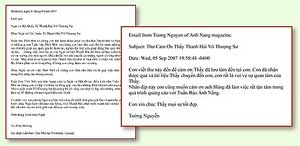 Gần đây, thay mặt cho Hội Quốc tế Thanh Hải Vô Thượng Sư, chúng tôi viếng thăm hai tuần báo này để trình thư cảm tạ và quà cảm kích cho họ. Ðể đáp lại, đại biểu của hai tuần báo đã gởi tình thương và lời cảm ơn đến Thanh Hải Vô Thượng Sư. Ông Tường Nguyễn đã thay mặt cho Tuần báo Ánh Nắng viết một điện thư bày tỏ lòng biết ơn đối với sự quan tâm của Sư Phụ. Cô Hà Thúy Hương từ Tuần báo Thời Mới công nhận tình thương và lòng quảng đại vô tận của Sư Phụ. Côø viết trong lá thư: "Những gì mà Tuần báo Thời Mới và chúng con làm thật quá nhỏ bé trước những việc lớn lao như trợ giúp các quốc gia khác... những việc làm bác ái của Ngài và Hội Thanh Hải đã đem lại bao niềm hạnh phúc và vui sướng cho mọi người... Tuần báo Thời Mới và chúng con xin trân trọng cảm ơn Ngài và Hội đã tạo điều kiện cho chúng con có dịp tìm hiểu và đóng góp vào Hội những điều hữu ích cho mọi người..." ![]() Ðại biểu của Tuần báo Thời Mới cô Hà Thúy Hương ![]() Thư cảm tạ và điện thư từ đại biểu của Tuần báo Ánh Nắng và Thời Mới. (nguyên văn tiếng Âu Lạc) Chia sẻ trí huệ của Sư Phụ tại phố chợ