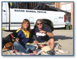 Biết đến công việc cứu nguy thú vật của họ, Thanh Hải Vô Thượng Sư đã đóng góp cho Ðội cứu Cá voi số tiền là 10.000$ mỹ kim, ngõ hầu họ có thể tiếp tục việc làm cao cả đó. Khi cô Jane trao tấm ngân phiếu cho ông Peter trong buổi phỏng vấn vào ngày 10 tháng 12, ông hết lòng bày tỏ sự biết ơn đối với Sư Phụ Thanh Hải, vì ông và đội của ông có rất ít thời giờ để gây quỹ, và số tiền này sẽ được dùng vào việc cứu thêm nhiều thú vật nữa. Ông nói quà tặng này sẽ được dùng mua một chiếc xe cứu nguy mới thay cho chiếc cũ đã chạy 230 ngàn dặm mà họ dùng để cứu mạng hàng ngàn con thú trong thập niên qua. Peter sau đó cũng gửi thêm một bức thư đến Sư Phụ để ngỏ lời biết ơn của ông một lần nữa, và nói rằng món tiền này không những giúp cho nhu cầu tài chánh của họ mà còn khuyến khích họ tiếp tục công việc giúp đỡ loài hải dương bị thương tích bệnh hoạn hoặc mồ côi. Hải cẩu "harp" là loài thú hải dương dễ thương hầu như